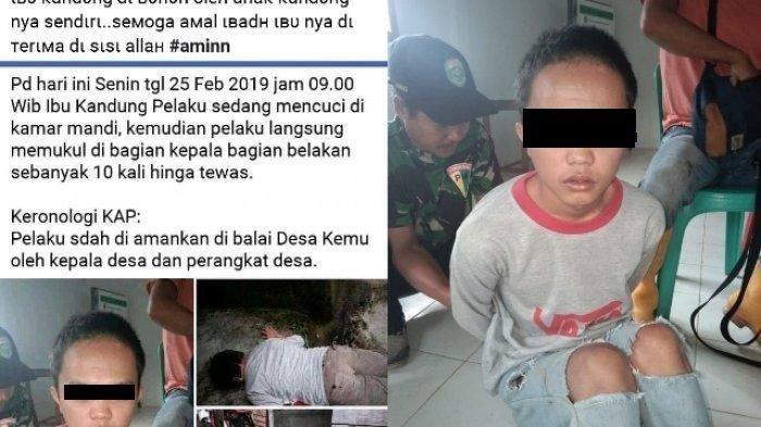 Berdasar keterangan polisi, pelaku emosi dan nekat membunuh ibu kandungnya karena tidak diberi uang untuk membeli sebilah pisau stek pohon kopi.