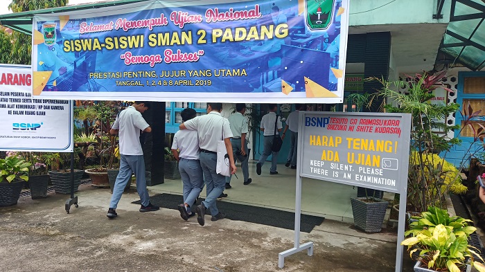 Hari ini siswa SMA Negeri 2 Padang melakukan Ujian Nasional Berbasis Komputer (UNBK) berjalan aman, lancar, dan tertib."Sekarang ini adalah UNBK tah