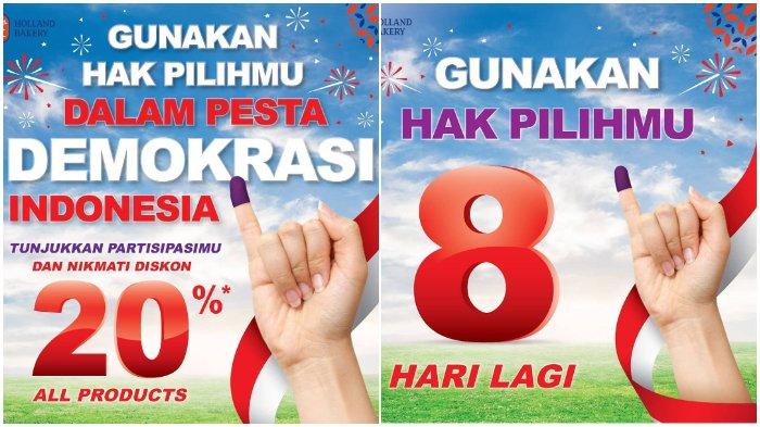 TRIBUNPADANG.COM - Holland Bakery memberikan promo spesial pemilu pada 17 April mendatang.