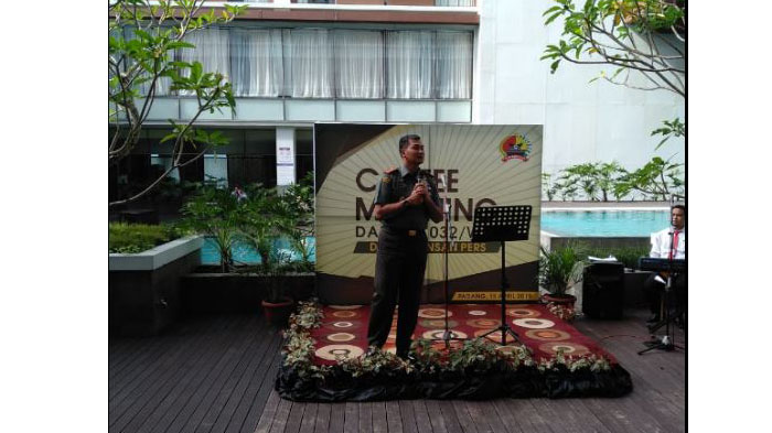 Brigjen TNI Kunto Arief sengaja hadir dalam acara Coffee Morning dengan Insan Pers, Pool Side, Hotel Mercure, Kota Padang, Sumatera Barat (Sumbar).