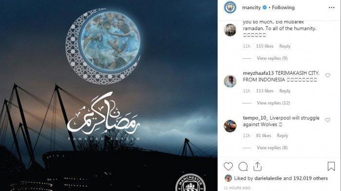 Sekitar satu jam sebelumnya, akun instagram Manchester City yakni @Mancity juga mengucapkan selamat menunaikan ibadah puasa.