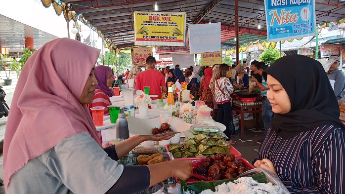 Di Pasa Pabukoan ini ramai oleh warga yang ingin membeli aneka makanan, minuman, dan gorengan.
