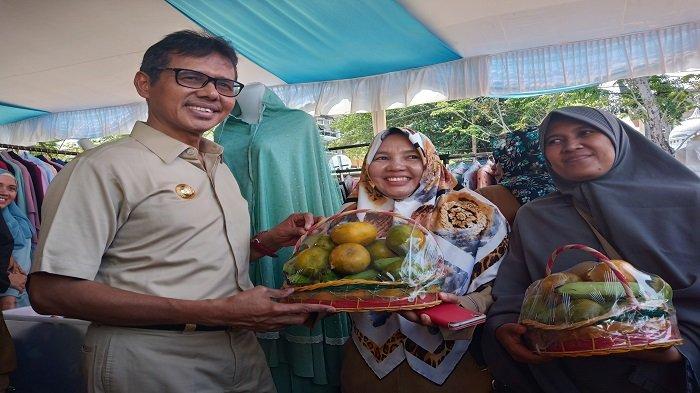 TRIBUNPADANG.COM, PADANG - Gubernur Sumatera Barat (Sumbar) Irwan Prayitno membuka kegiatan bazar murah di depan kantor Dinas Perdagangan dan Perindustrian (Disperindag) Sumbar, Selasa (14/5/2019).