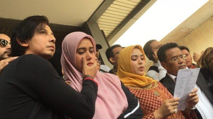 Air mata Fairuz A Rafiq, mengalir saat menjumpai awak media di Polda Metro Jaya, Senin (1/7/2018).