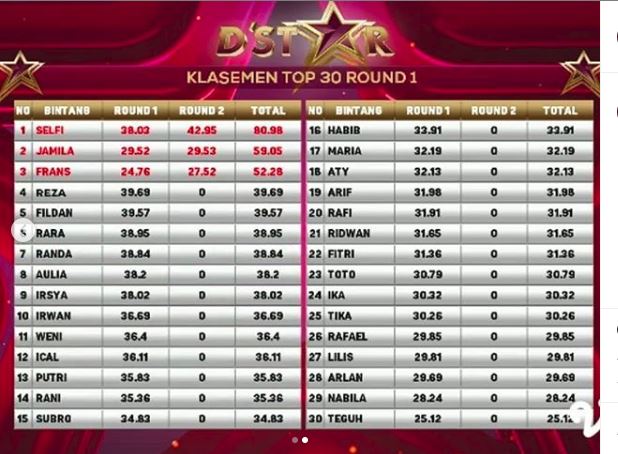 Klasemen D'Star Top 30 Round 2, Selfi Raih Nilai Lebih Tinggi dari Round 1, Puncaki Klasemen