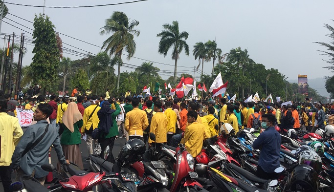Ratusan mahasiswa menggelar aksi demo di depan Kantor Gubernur Sumatera Barat ( Sumbar), Selasa (24/9/2019) siang.