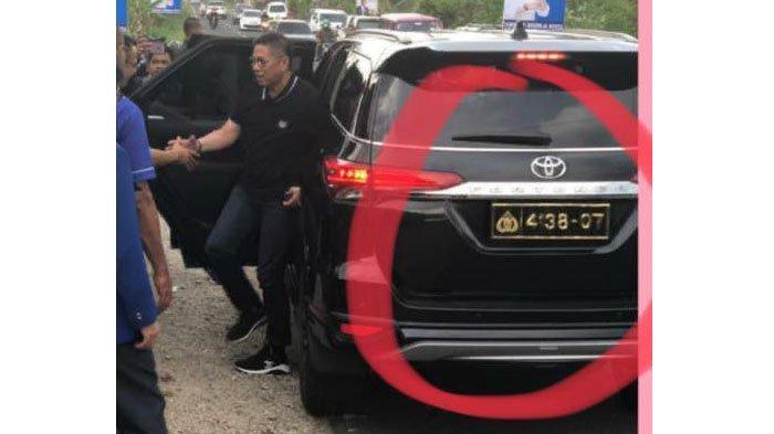 TRIBUNPADANG.COM, PADANG - Foto anggota DPR RI Mulyadi yang turun dari Toyota Fortuner berwarna hitam berpelat nomor Polri menjadi perbincangan.