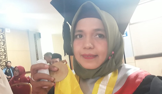 Pengumuman dirinya sebagai lulusan terbaik dengan predikat cumlaude atau dengan pujian, menarik perhatian seluruh wisudawan dan undangan yang hadir pada wisuda hari pertama, Sabtu (14/3/2020) lalu di Auditorium UNP Padang.