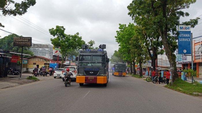 FOTO: 2 Water Canon Polda Sumbar Semprot Sejumlah Jalan di Padang Pakai Disinfektan