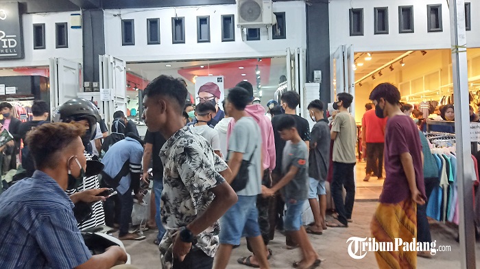 Berlanjut ke Jalan Gajah Mada, Kampung Olo, Kecamatan Nanggalo, Kota Padang, terlihat toko pakaian dipenuhi masyarakat hingga berdesak-desakan.