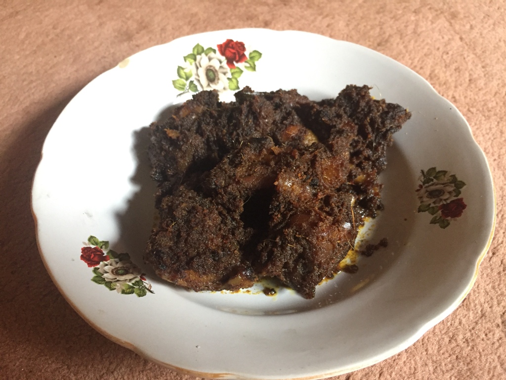 Ungkep potongan daging sapi dengan bumbu yang dihaluskan, tunggu hingga mengeluarkan air dan daging menjadi kering.
