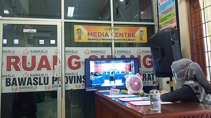 TRIBUNPADANG.COM, PADANG - Bawaslu Sumatera Barat (Sumbar) kembali menggelar sidang musyawarah penyelesaian sengketa proses Pilkada 2020 dengan agenda pembuktian dan menghadirkan saksi-saksi, Selasa (11/8/2020).