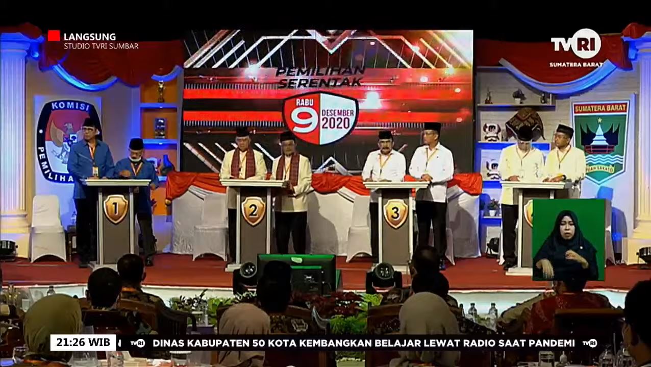 Pertanyaan ini disampaikan moderator Imam Priyono pada sesi pendalaman visi mis paslon, pada debat perdana Pilgub Sumbar 2020, Senin (23/11/2020).
