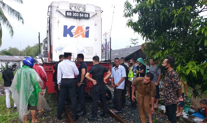 Dijelaskannya, kendaraan Sukisman (50) melaju dengan kecepatan sedang dan sampai di lokasi kejadian tertabrak kereta api.