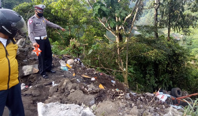 "Setelah menabrak dinding pembatas jalan, truk tersebut masuk ke dalam jurang," katanya.