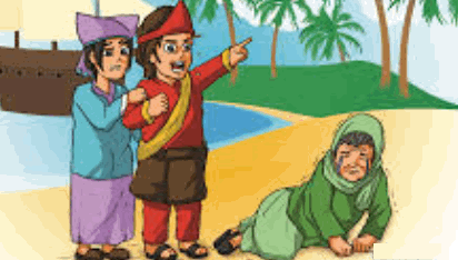 Malin mengenali ibunya. Namun, ia malu mengakui orangtua yang berpakaian sangat lusuh itu. Sungguh sakit hati Ibunya mendengar perlakuan Malin. Ibunya lalu mengutuk Malin. “Hatimu sungguh sekeras batu, Malin. Maka, kau aku kutuk menjadi batu. Kau anak yang durhaka.” ucap ibunya.