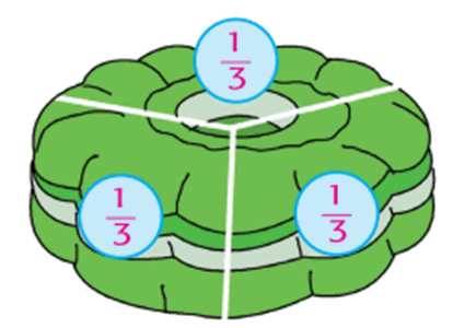 . Siti ingin membagi sebuah kue. Masing-masing bagian sebesar 1/3. Maka kue tersebut dibagi menjadi ___3____ bagian sama besar. |