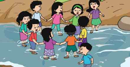 Ali bersama teman-temannya memiliki kegiatan yang digemari, yaitu bermain di sungai. Mereka sering bercerita seusai bermain.