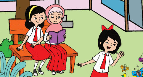 Sebelum bermain ke kebun sekolah, Siti dan teman-temannya pergi ke perpustakaan terlebih dulu.