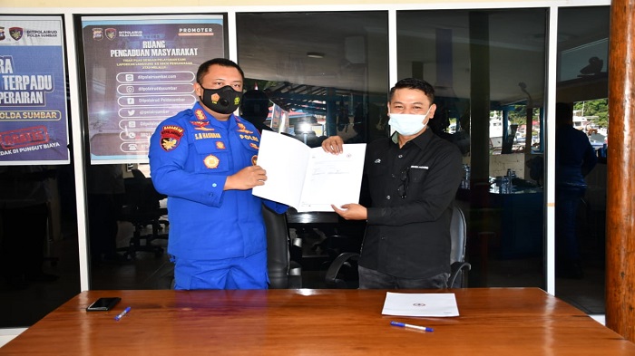 Serah terima Kantor Subdit bingakkum Ditpolairud di Jalan Batang Arau, Kota Padang itu, ditandai dengan penandatanganan serahterima bangunan dari Kepala Unit CSR PT Semen Padang Rinold Thamrin, kepada Direktur Ditpolaird Polda Sumbar Kombes Pol Sahat M Hasibuan, S.I.K, MH.