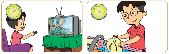 | 3. | Udin menonton TV pukul 14.00. | 4. | Udin mencuci piring pukul 16.00. |