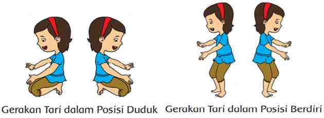 Gerakan tari dapat dilakukan dalam posisi duduk dan berdiri.