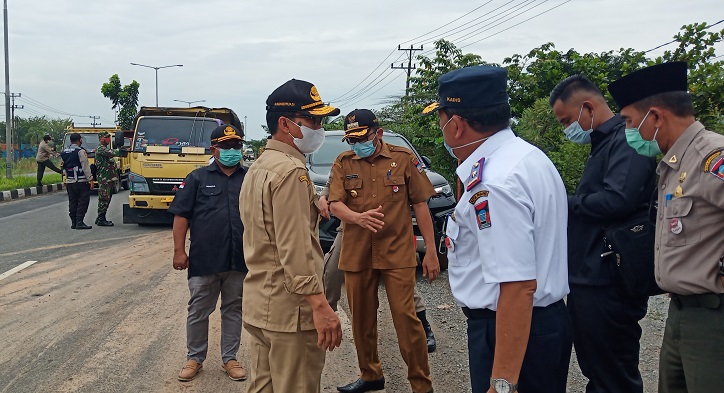 Wali Kota Padang Hendri Septa meninjau pos penyekatan kendaraan pada posko perbatasan Bypass, Kota Padang, Selasa (13/7/2021).