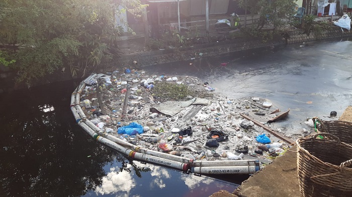 Perangkap sampah ini dipasang di aliran air yang ada dekat pemukiman masyarakat sehingga sampah tidak sampai ke laut.