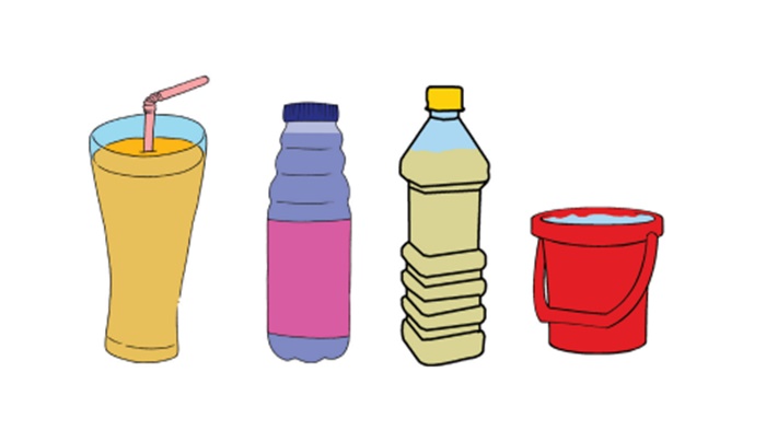 1. Masukkan air ke dalam ember. Kemudian, ke dalam gelas dan terakhir ke dalam kantong plastik.