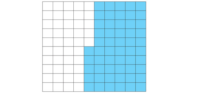 2. Dengan cara menuliskan dalam pecahan yaitu, 5/100 dari keseluruhan kotak adalah kotak biru.