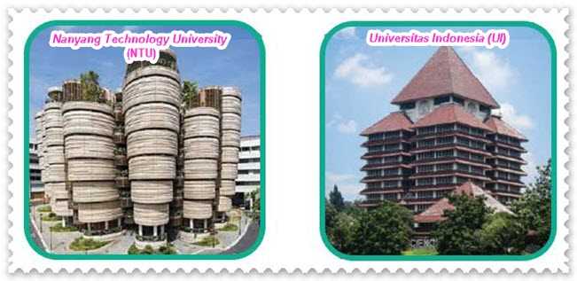 Kedua gambar itu merupakan bagian dari kampus perguruan tinggi ternama. Gambar kiri merupakan kampus Nanyang Technology University (NTU) di Singapura. Gambar kanan merupakan kampus Universitas Indonesia (UI) di Depok. Banyak mahasiswa NTU berasal dari Indonesia. Sebaliknya, banyak pula mahasiswa yang belajar di UI berasal dari luar negeri.