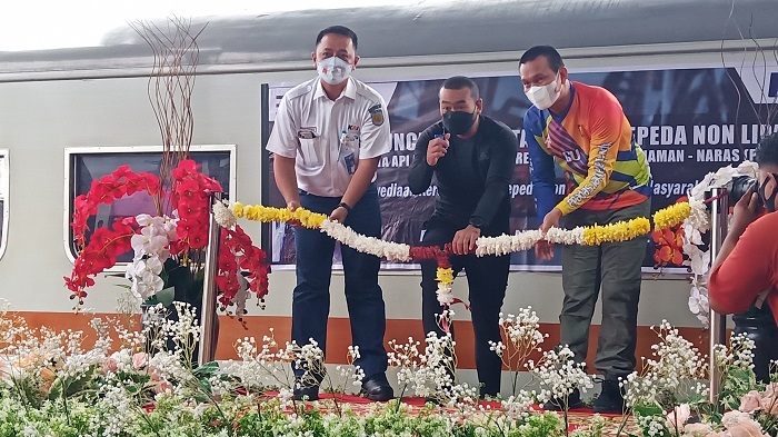"Kita harus bangga, terobosan ini merupakan pertama kalinya untuk kereta api lokal di seluruh Indonesia," ucap Audy Joinaldy saat melaunching gerbong khusus sepeda di Stasiun Simpang Haru, Padang, Sabtu (20/11/2021).