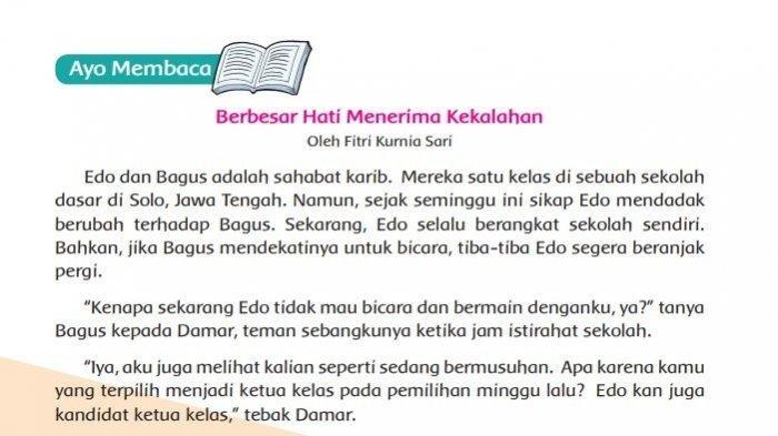 Siswa diminta membaca sebuah teks yang berjudul Berbesar Hati Menerima Kekalahan