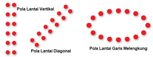 Pada dasarnya, ada dua pola garis dasar pada lantai, yaitu garis lurus dan garis lengkung. Garis lurus memberikan kesan sederhana tetapi kuat. Sedangkan garis lengkung memberikan kesan lembut tetapi lemah.