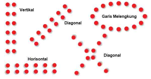 Gambar 1 menunjukkan pola lantai yang dilalui oleh seorang penari. Gambar 2 menunjukkan garis di lantai yang dibuat oleh formasi kelompok.