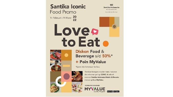 Meramaikan hari kasih sayang atau Valentine’s Day, Santika Indonesia mengangkat program Santika Iconic Food yang diberi nama “Love to Eat” dengan memberikan promo menarik di 48 unit mulai dari Kampi Hotel, Hotel Santika, Hotel Santika Premiere, The ANVAYA, The Kayana & The Samaya.