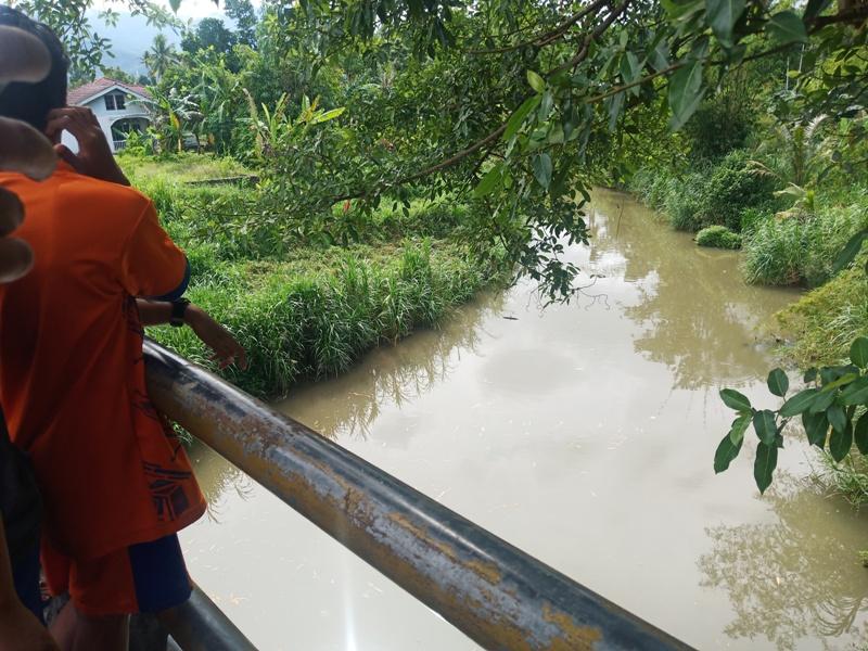 Pantauan TribunPadang.com, buaya tersebut terlihat jelas dari arah jembatan.