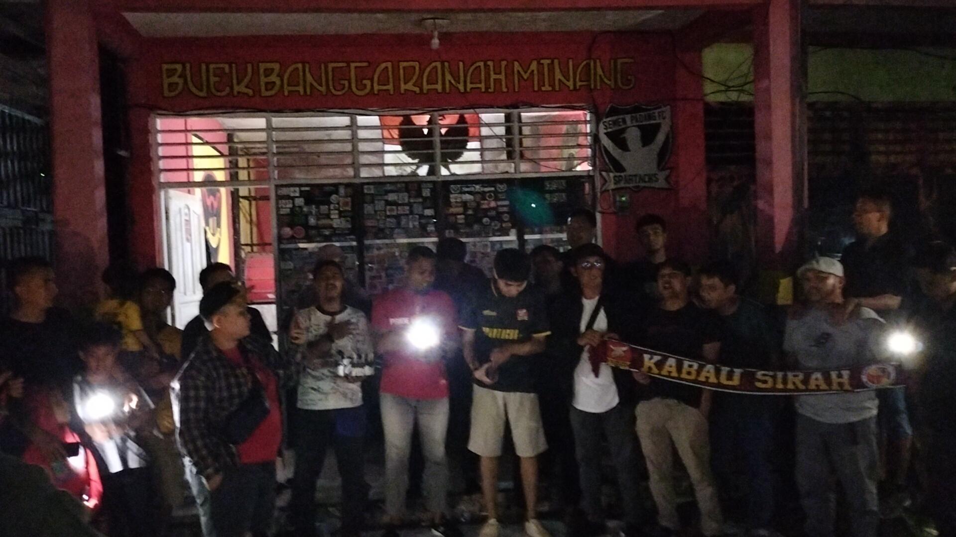 Kelompok suporter pendukung Semen Padang FC ini, menggelar syukuran dan pemotongan kue bersama puluhan anggotanya selepas Isya.