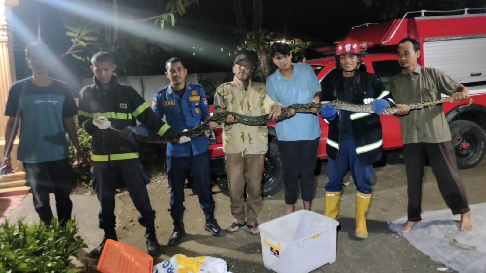 "Sekitar pukul 23.15 WIB ular berhasil ditangkap. Jenisnya piton yang diperkirakan memiliki panjang kurang lebih 3 meter," katanya.
