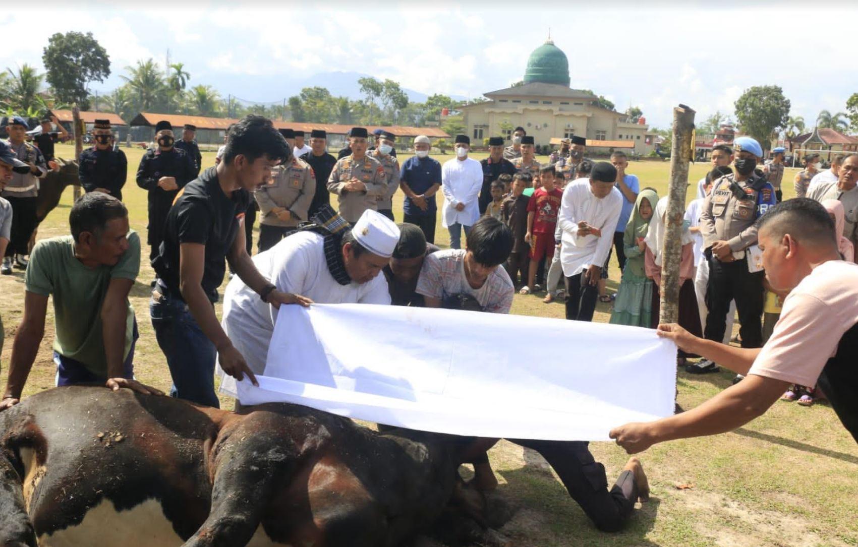 Diketahui, penyembelihan hewan kurban juga dilaksanakan di seluruh jajaran polres di Polda Sumbar.