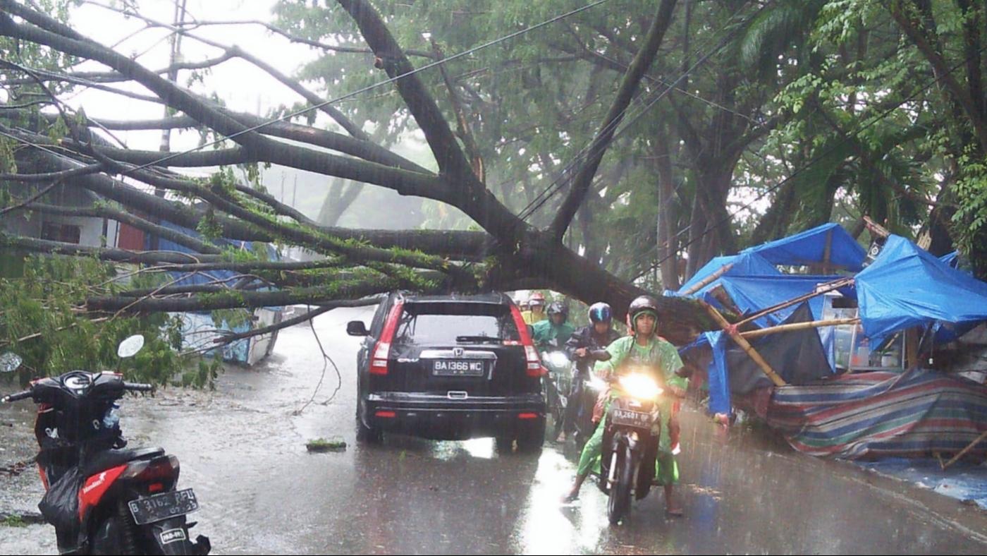 Kejadian pertama, pohon tumbang menghambat jalan dan menimpa mobil di Jalan Ujung Tanah Rt 03/Rw 09, Kelurahan Lubuk Begalung, Kecamatan Lubuk Begalung, Kota Padang.