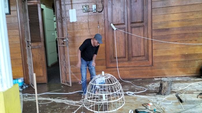 Pembuatan Bungo Salapan ini, sambung Ade berbahan baku bambu dan rotan yang dirawut agar bisa menekuk untuk membentuk serupa payung.