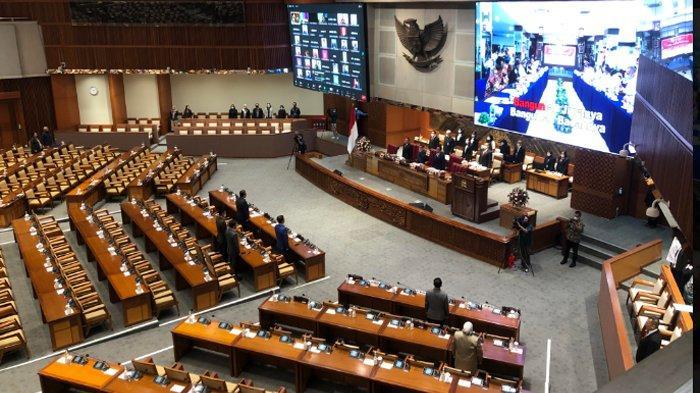 Rapat Paripurna hari ini dipimpin oleh Wakil Ketua DPR RI Sufmi Dasco Ahmad. Tampak Wakil Ketua DPR RI Lodewijk F. Paulus dan Rachmat Gobel mendampingi Dasco di meja pimpinan.