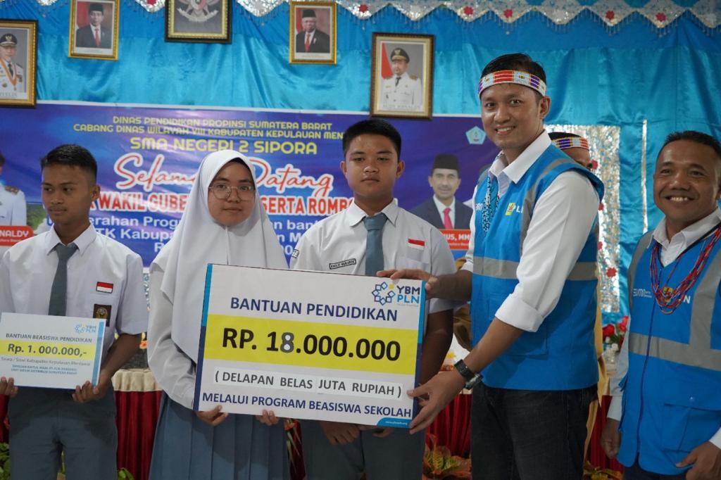PT PLN (Persero) Unit Induk Distribusi (UID) Sumatera Barat bersama dengan Yayasan Baitul Maal (YBM) PLN Unit Pelaksana Pelayanan Pelanggan (UP3) Padang serahkan bantuan Pendidikan kepada 18 siswa-siswi di tiga sekolah di Kabupaten Kepulauan Mentawai.