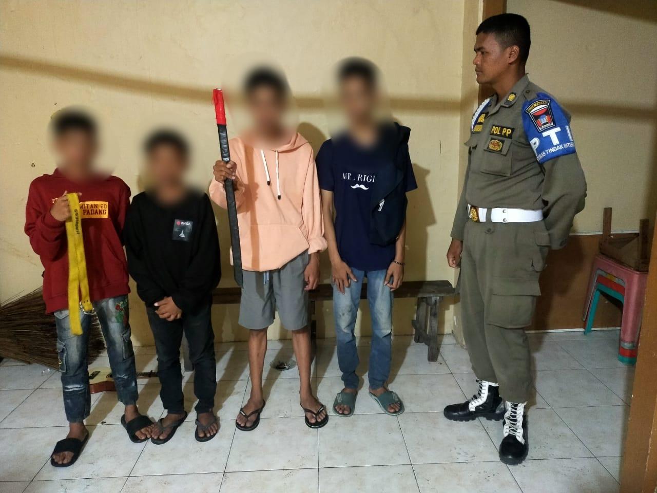 Satuan Polisi Pamong Praja (Satpol PP) Kota Padang mengamankan empat orang remaja dengan satu senjata tajam (sejam) berupa samurai dan satu unit ...