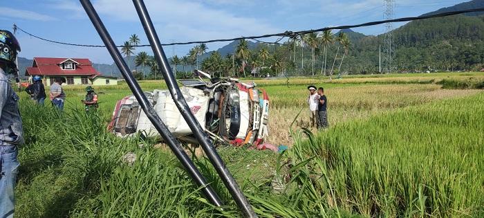 Kecelakaan di Lintas Bukittinggi-Payakumbuh, Bus Tabrak Tiang Listrik Lalu Terpental ke Sawah
