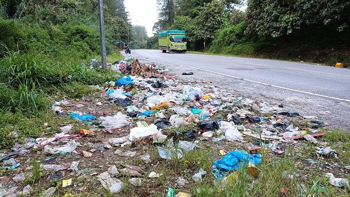 Tumpukan sampah juga terlihat di pinggir jalan Padang-Solok, Jorong Lubuk Selasih, Nagari Batang Barus.