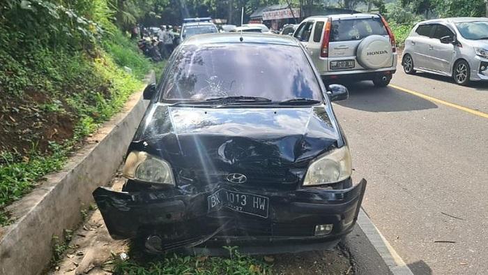 Peristiwa kecelakaan tiga kendaraan ini terjadi pada Senin (24/4/2023) sekitar pukul 14.00 WIB. Kendaraan yang terlibat kecelakaan terdiri dari mobil Hyundai Getz BK 1013 HW, sepeda motor Honda Vario BA 2460 LAA dan Yamaha Mio BA 3176 NR.