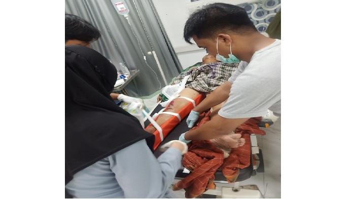 Kondisinya, pengendara luka lecet dibeberapa bagian, sedangkan pembonceng mengalami patah kaki dan luka-luka.