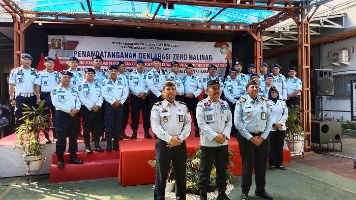 Deklarasi Zero Halinar (handphone, pungutan liar, dan penyalahgunaan narkoba) diikuti oleh seluruh petugas dari Kemenkumham Sumbar.